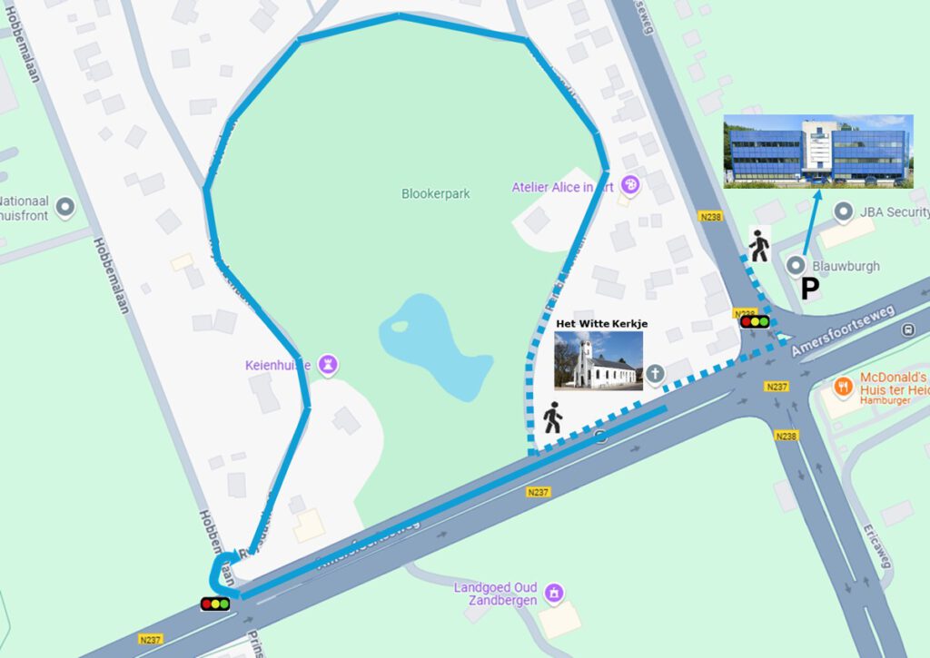 Let op dat er weinig parkeerplaatsen zijn op het terrein van de kerk, maar er zijn voldoende mogelijkheden rondom de kerk: